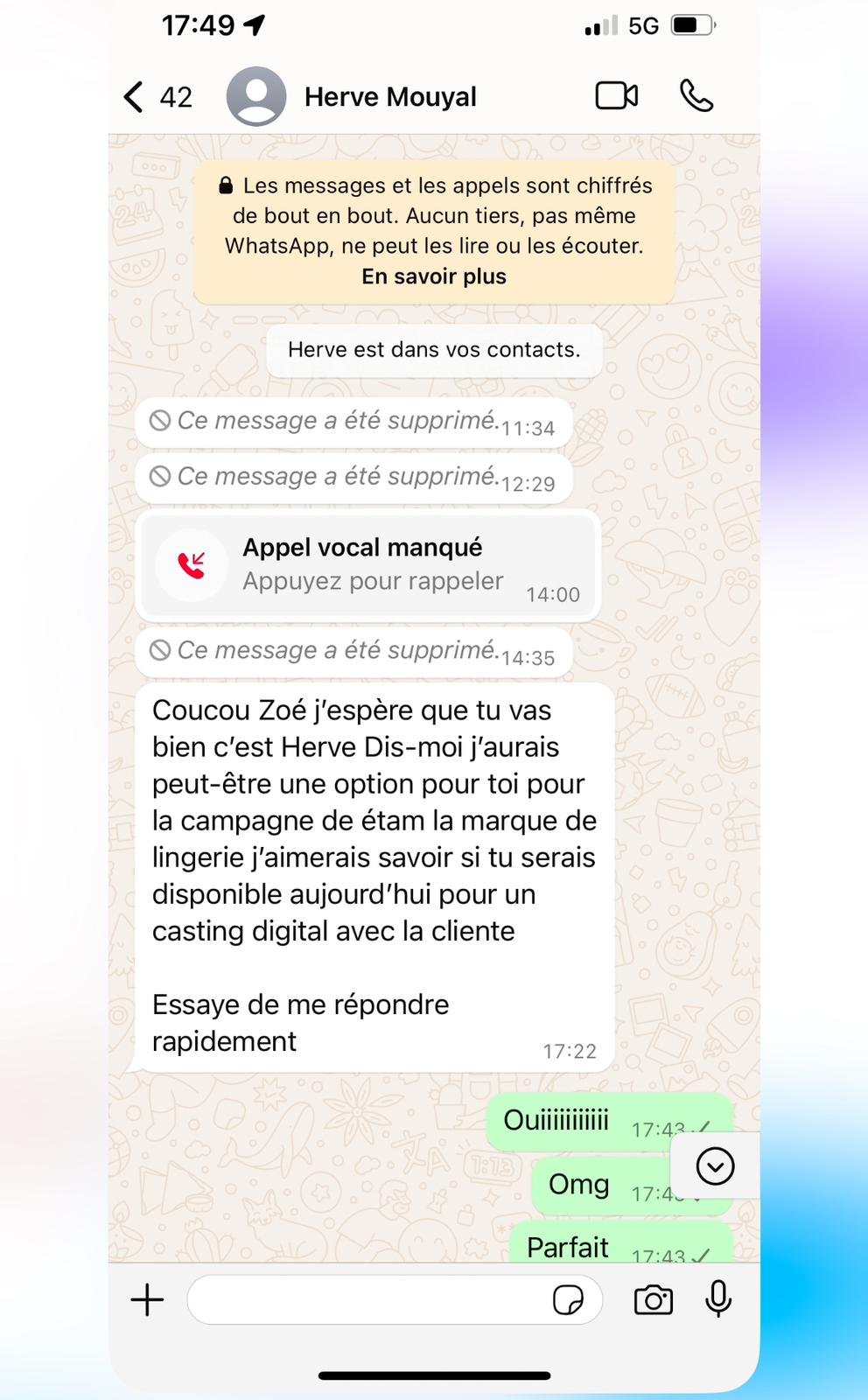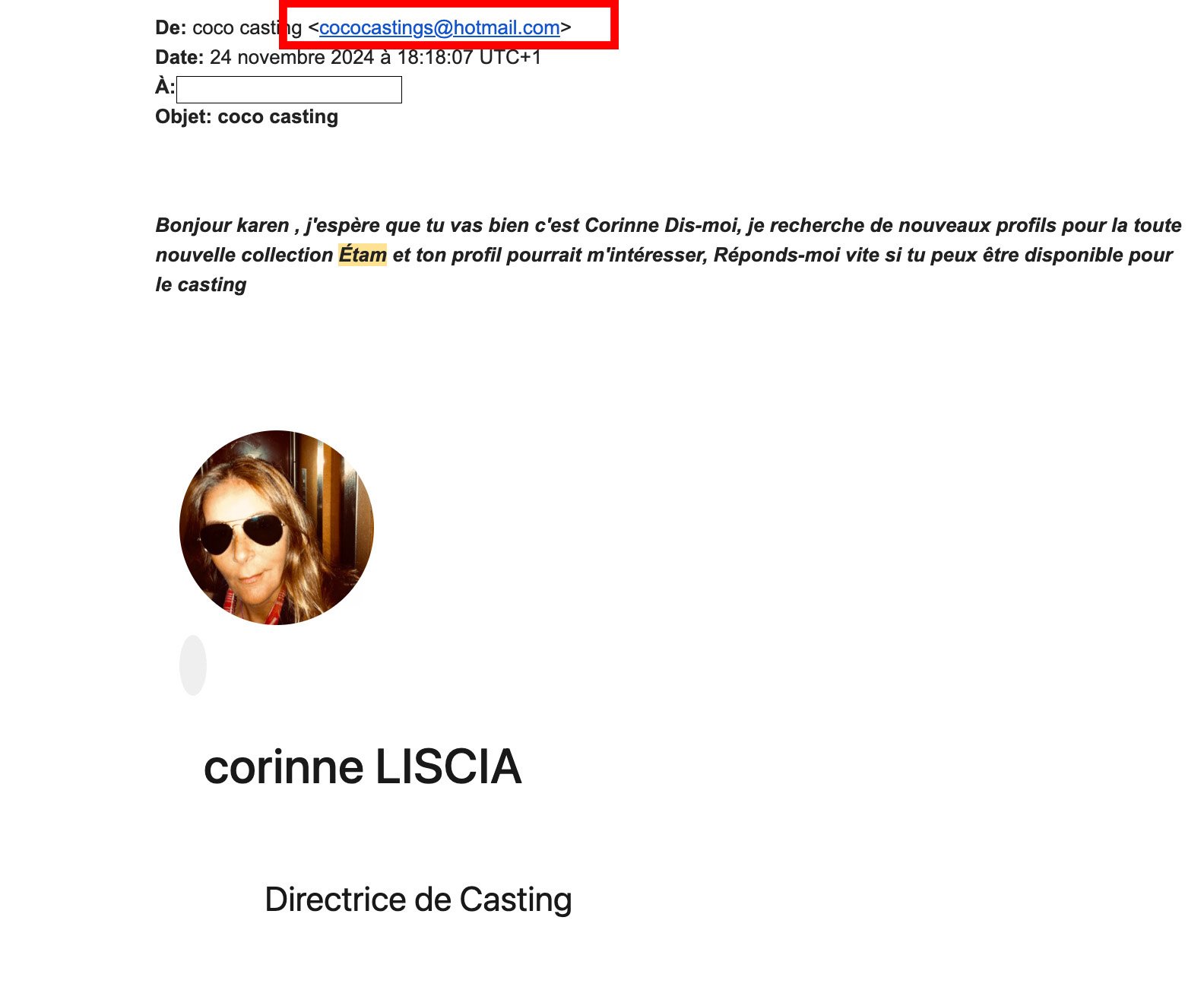 - Vous recevez un message urgent (mail, DM ou même WhatsApp) d’un soi-disant directeur ou directrice de casting.