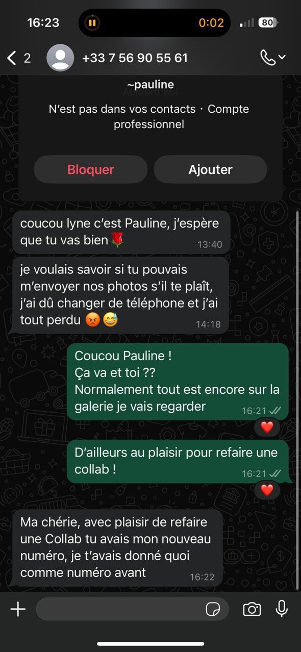 - Sur Whatsapp, il vont utiliser un numéro de téléphone avec le nom et prénom d’un bookeur ou d’un directeur de casting (exemple ci-dessous).